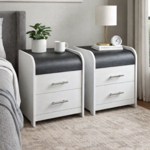 The ArcEdge Bedside Cabinet Set brings together modern design and everyday functionality in a clean, compact form. Each unit features a distinctive curved top profile with a durable textured surface, paired with a crisp white body for a balanced, contemporary look.