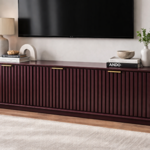 The Arlo Fluted Media Console is a modern storage piece designed to bring structure and warmth into your living space. Finished in a deep burgundy tone, it features a continuous fluted front that adds subtle texture while maintaining a clean, linear look.
