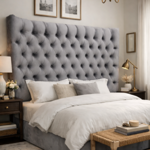 Built on a sturdy internal frame, this headboard offers both comfort and long-lasting support. The neutral grey tone makes it easy to pair with a wide range of bedding styles, from minimal to more decorative setups.